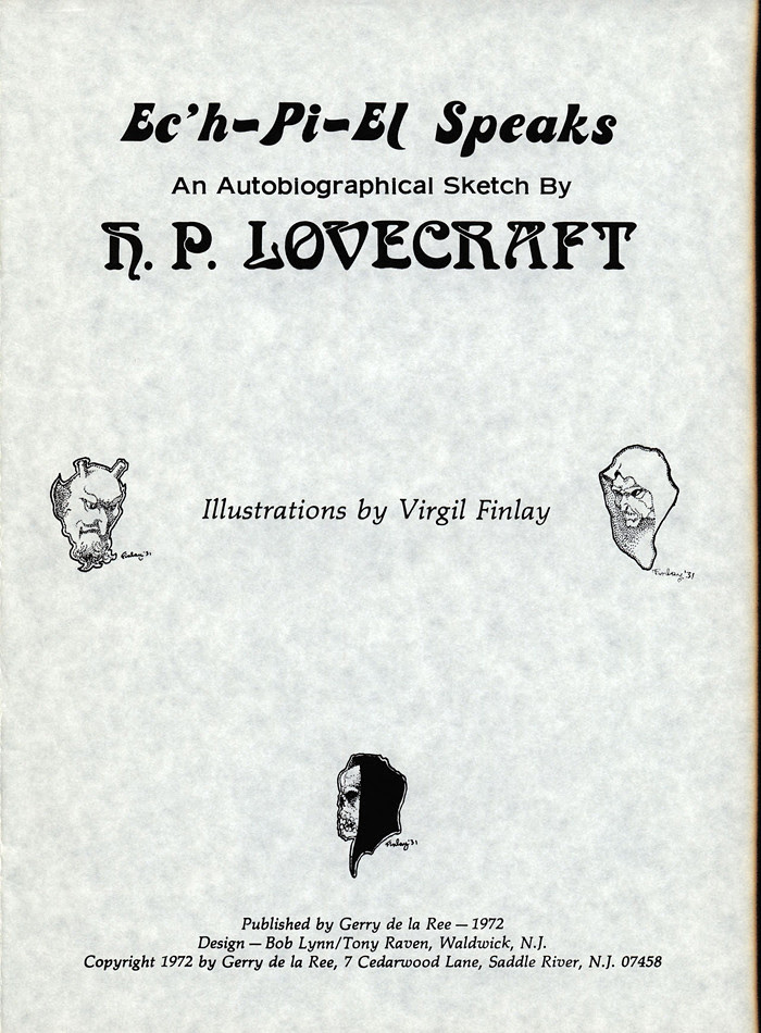 I feel a wee bit of remorse for teasing H.P. Lovecraft in my last post about his prudish attitude toward Brundage, so I thought I'd make a quick post tonight of one of my earliest scans, Ec'h-Pi-El Speaks - An Autobiographical Sketch by H.P. Lovecraft, the longest autobiographical piece that Lovecraft ever wrote.