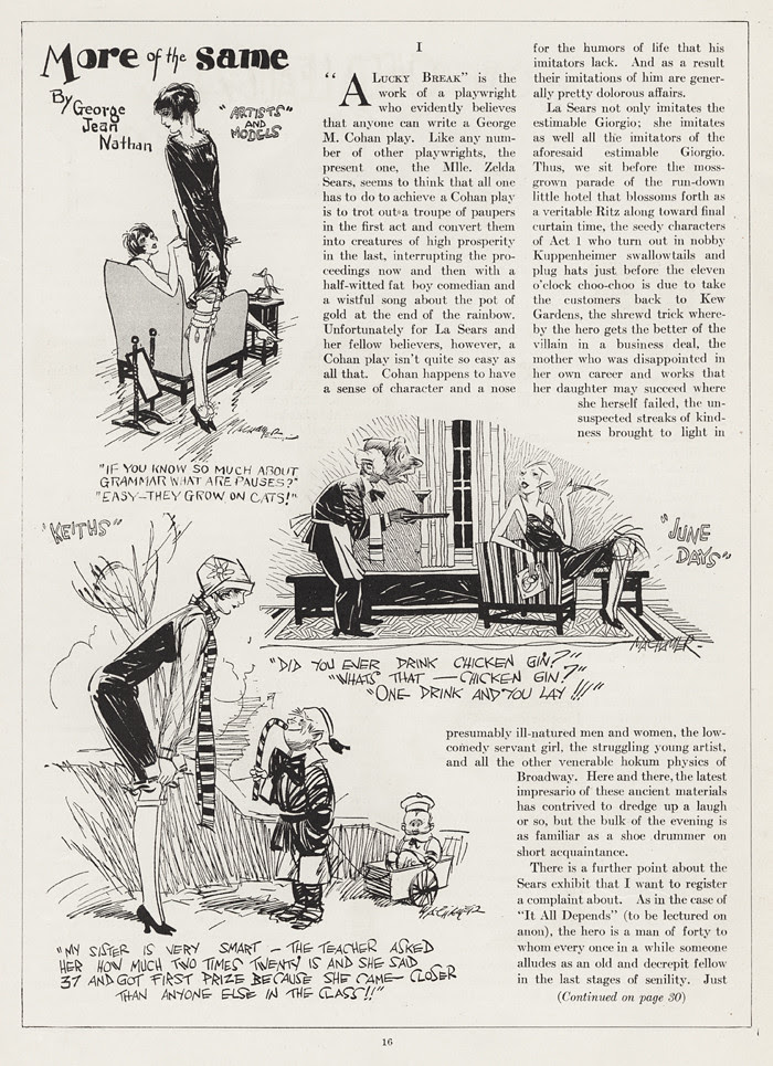 More Machamer. Illustrating theater reviews by George Jean Nathan, more famous for his work with H.L. Mencken on one of the most notorious magazines of the day, The American Mercury.